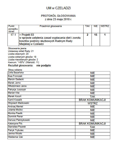 Podczas ostatniej sesji 23 maja br. w porządku obrad pojawił się projekt uchwały dotyczący obniżenia diet radnych w Czeladzi. Projekt przygotowała grupa mieszkańców w ilości co najmniej 100 osób. Jak się okazała już podczas komisji radni w większości byli przeciwko temu projektowi. W głosowaniu 2 radnych poparło obniżkę, 15 było przeciwko. Ja wstrzymałem się od głosu.