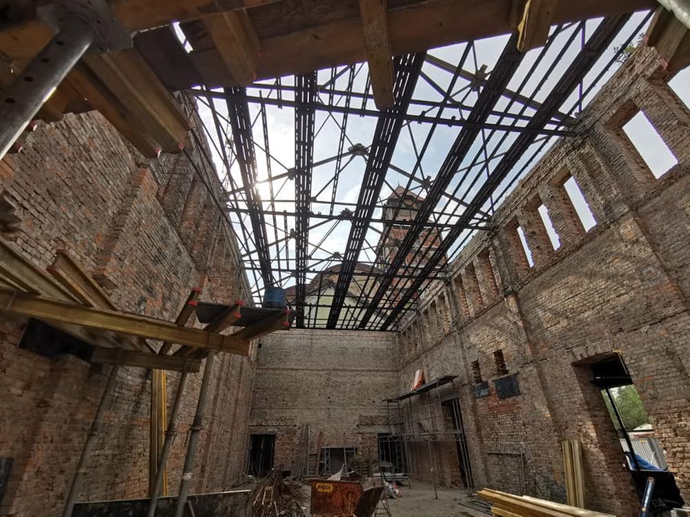 Obecnie umacniane są fundamenty pozostawionych ścian budynków Cechowni i położona nowa konstrukcja dachowa. Jeżeli nie pojawią się nieprzewidziane przeszkody, to remont powinien się zakończyć zgodnie z zaplanowanym terminem, tj. wiosną 2022 roku.