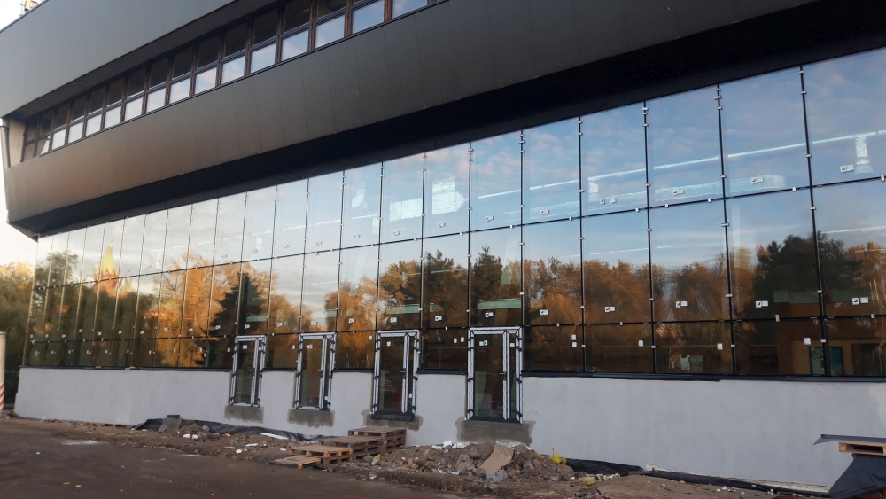 W październiku na budowie pojawiły się szyby, które były montowane w holu głównym budynku. Niebawem wykonane zostaną stopnie schodów wejścia głównego. Pozostałe schody są w tej chwili na ukończeniu. Ponadto układane są kafelki się kładą. Rozpoczynają się też prace porządkowe, w tym te związane z czyszczeniem parkietu hali, widowni oraz sceny.