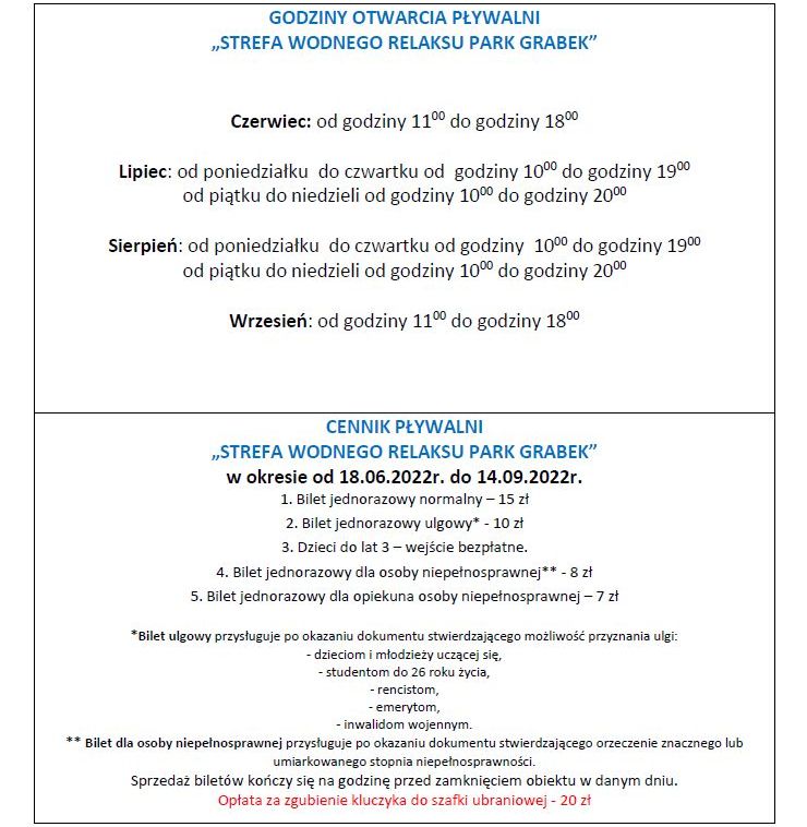 Poniżej cennik za korzystanie z basenu w 2022 roku.
