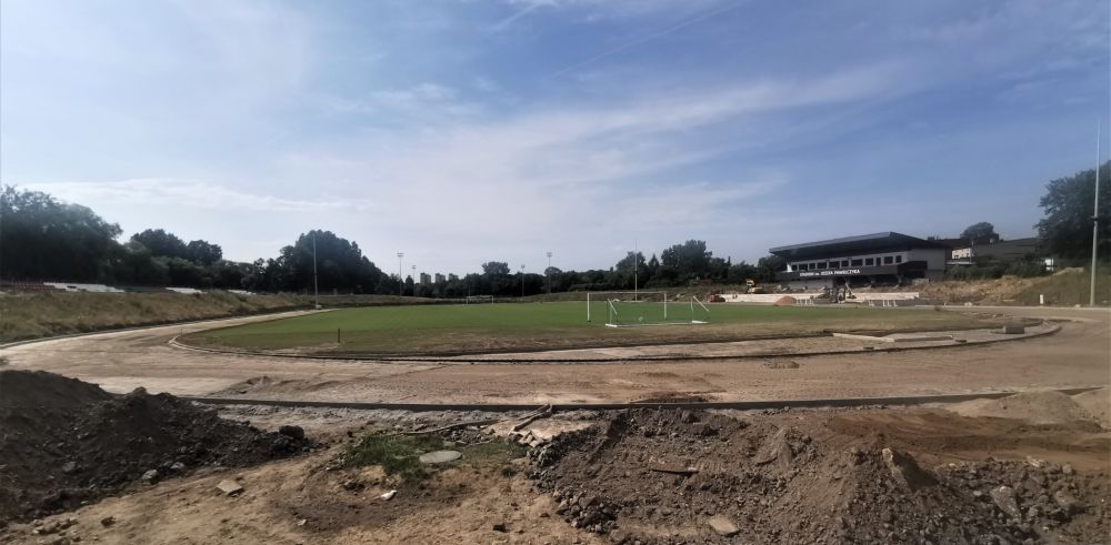 Obecnie najważniejsze prace, firma wykonująca remont, ma już za sobą. Wytyczono bieżnię, ma ona już odwodnienie i podbudowę. Wkrótce wylana zostanie betonem, na który następnie ułożony zostanie tartan. Zamontowane są już słupy oświetleniowe boiska. Powstaje też, betonowa trybuna po zachodniej stronie stadionu.