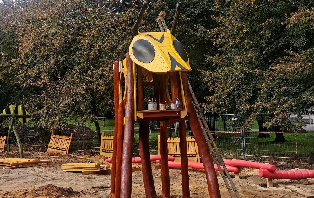 Już w październiku park na Grabku wzbogaci się o trzy place zabaw w kształcie… gigantycznych owadów. Inwestycja opóźniona, ale wreszcie zmierza do szczęśliwego finału i na pewno ucieszy wielu małych Czeladzian, oby tylko oparła się zapędom wandali.