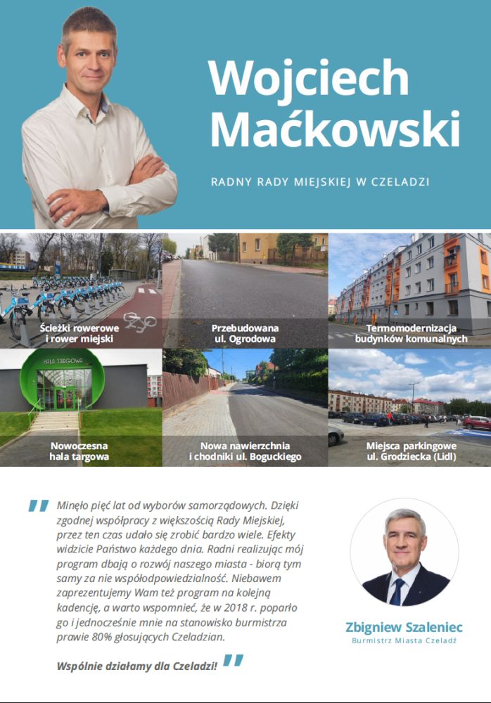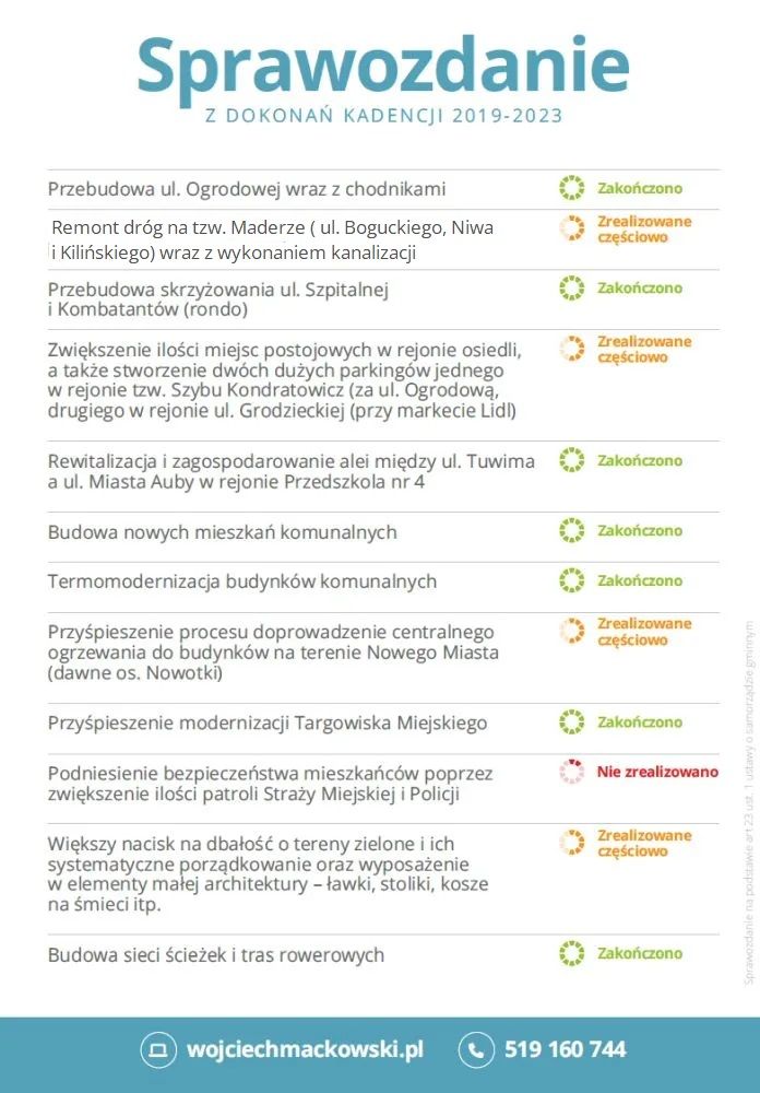 Moje sprawozdanie to nie są informacje pisane na kolanie w ostatnie chwili, aby przypodobać się Czeladzianom, bo każdy może sprawdzić, że w 2018 r. zaproponowałem konkretne działania, a teraz można spojrzeć co z nich zostało wykonane: Program na lata 2019-2023.