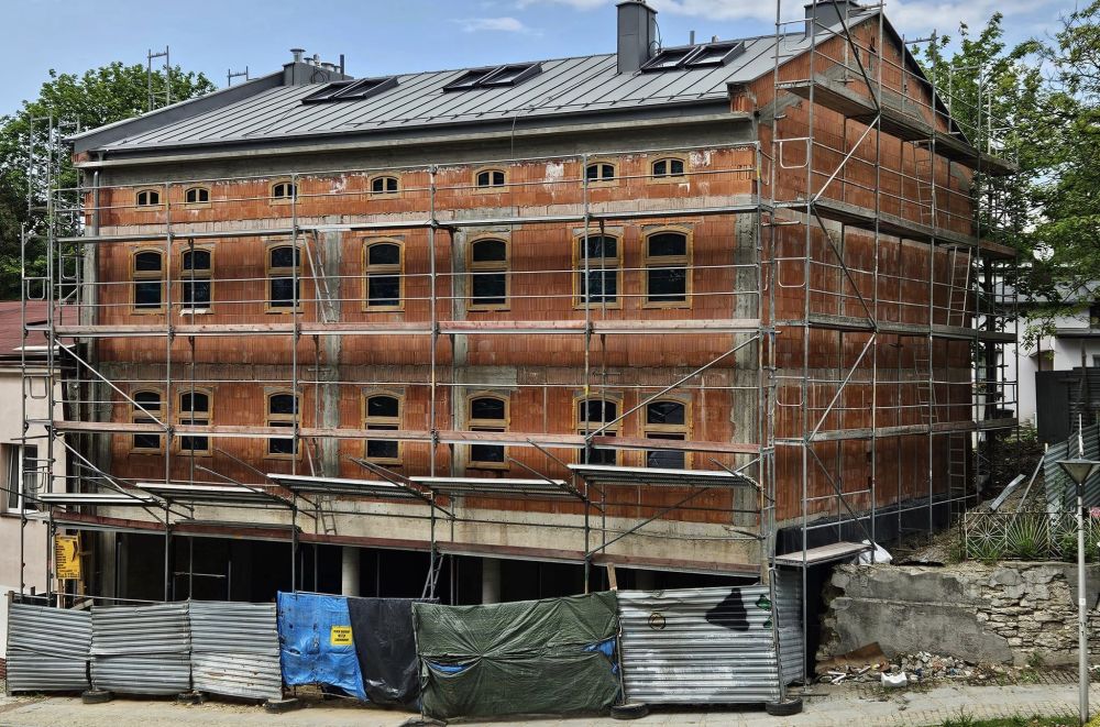Wszyscy na pewno pamiętają jak przez wiele lat wyglądał ten budynek, a raczej jego ruina. Miasto zakupiło budynek już dawno temu, ale wcześniej nie udało się podjąć remontu. Umowa została rozpisana na zasadzie zaprojektuj i wybuduj. Oznacza to, że budynek został wyburzony, a teraz jest budowany od podstaw. Mają tam powstać mieszkania i lokale użytkowe.