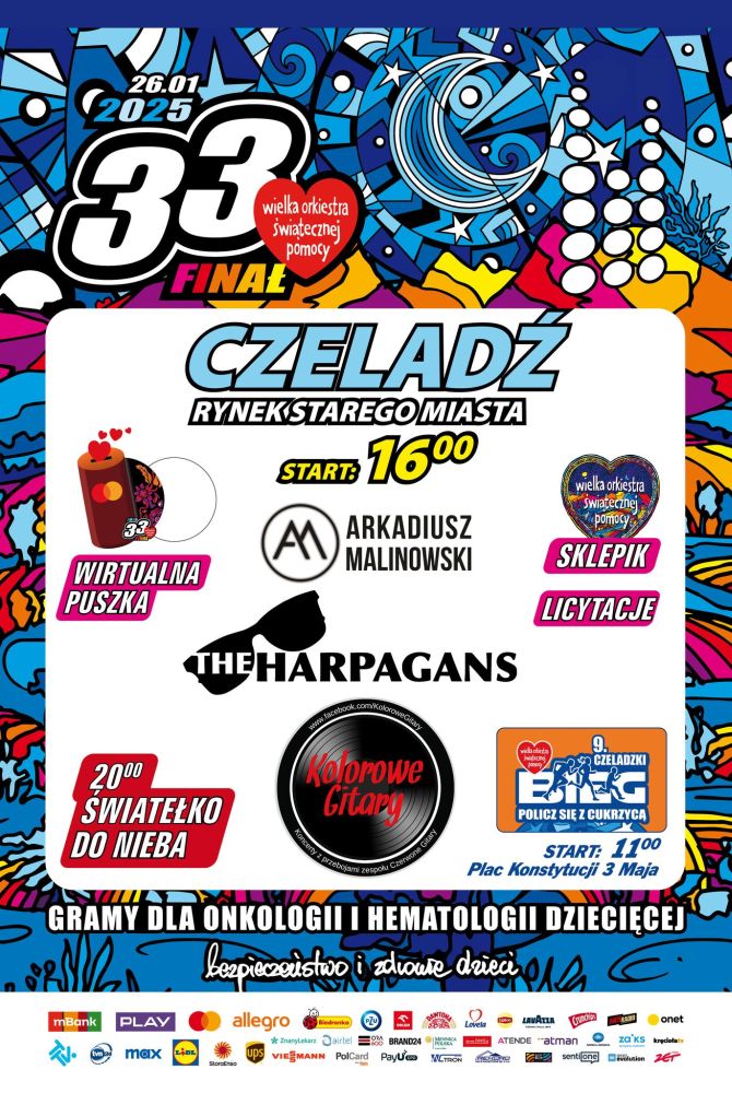 26 stycznie 2025 r. odbędzie się 33. finał Wielkiej Orkiestry Świątecznej Pomocy, tym razem zagramy dla onkologii i hematologii dziecięcej, a motywem przewodnim jest bezpieczeństwo i zdrowie dzieci. Miasto Czeladź i Czeladzianie jak zwykle włącza się do akcji i szykuje na ten dzień wiele atrakcji.
