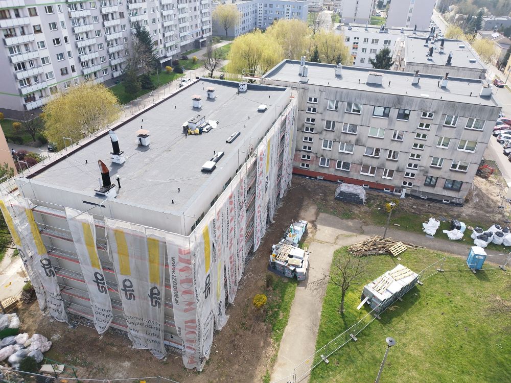 Trwają prace związaną z kompleksową termomodernizacją budynków niskich przy ul. Ogrodowej 10, 14, 16 i 18. Jeszcze w 2024 r. Zarząd Czeladzkiej Spółdzielni Mieszkaniowej podpisał 6 umów kredytowych na łączną kwotę 5,3 mln zł (pozostałe budynki to Jaśminowa 1-3 oraz Jaśminowa 5-7-9). Prace są zaawansowane i zgodnie z umową powinny się zakończyć do 30 czerwca 2025 r.
