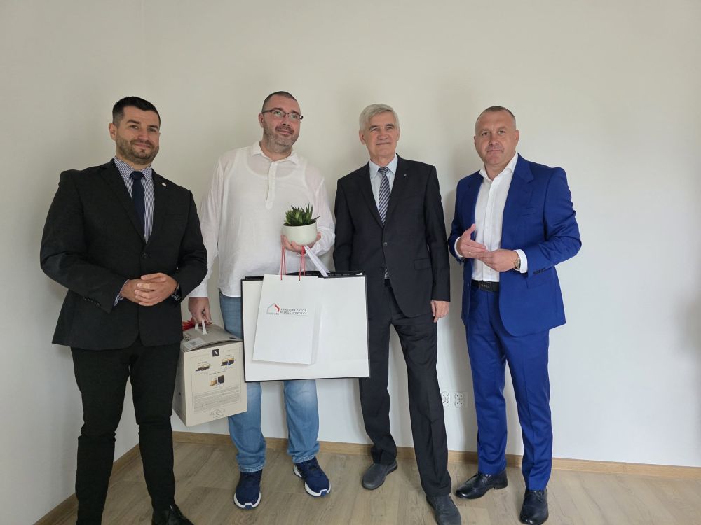 Warto dodać, że symboliczny udział w oddaniu do użytku budynku, wzięli udział także najemcy trzech mieszkań, którym prezes SIM wręczył klucze do ich lokali i a my razem z prezesem KZN, drobne upominki.