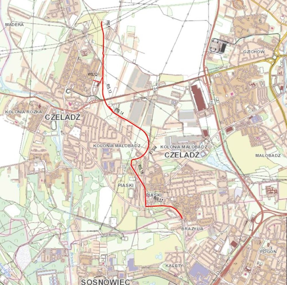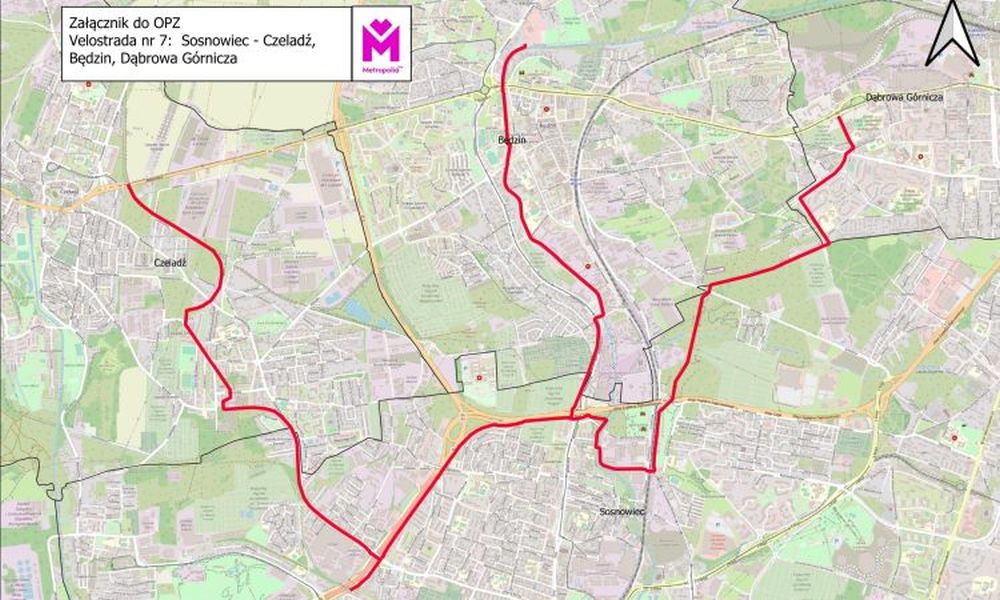 Na terenie Czeladzi velostrada zostanie przeprowadzona dawnym śladem kolei piaskowej. Zaczynać się będzie przy granicy z Grodźcem i wzdłuż ul. Grodzieckiej – za centrum handlowym poprowadzi przez ul. Będzińską (wiaduktem kolejowym) w stronę ulic Gdańskiej i Poniatowskiego (tym razem dołem pod ul. Nowpopogońską). Przez ul. Kościuszki do Granicznej, a dalej w kierunku Betonowej do Sosnowca. W tym miejscu przejedzie w stronę ul. Grota-Roweckiego do Sosnowca, komunikując nas z Dąbrową Górniczą oraz z Katowicami.